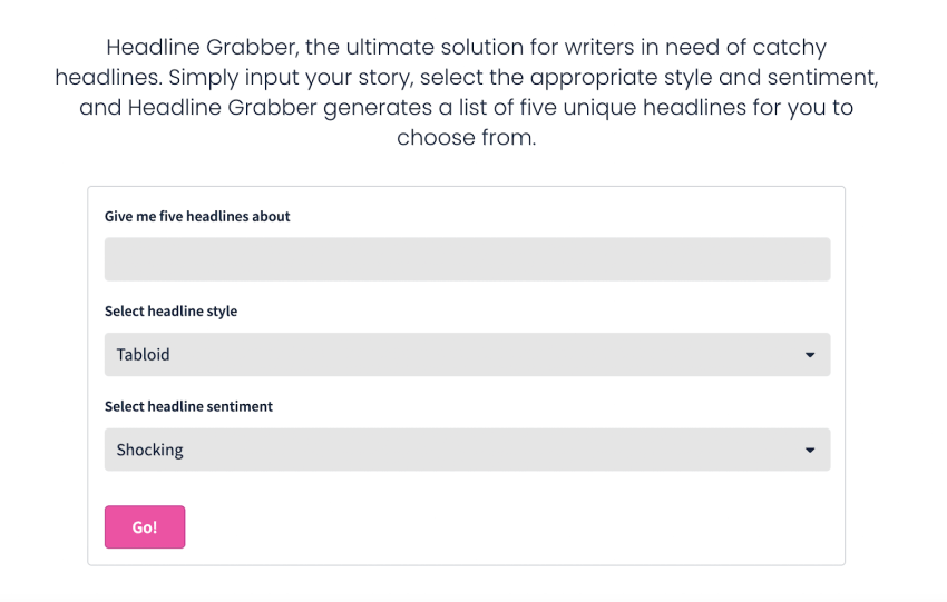 I’m always here for PR agencies creating their own unique tools using AI to help the rest of us out. Distinctly made a super useful tool called the Headline Grabber in which you input your story, the headline style and sentiment and it gives you five starter headlines for you to use. Helpful!
