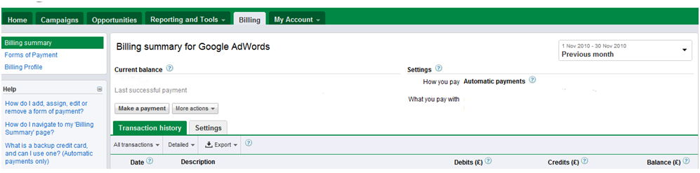 I’m not sure if this has been around for a while & I’ve just missed it but when I was reconciling the AdWords costs for one of my clients this morning I noticed that the Billing tab had changed slightly.