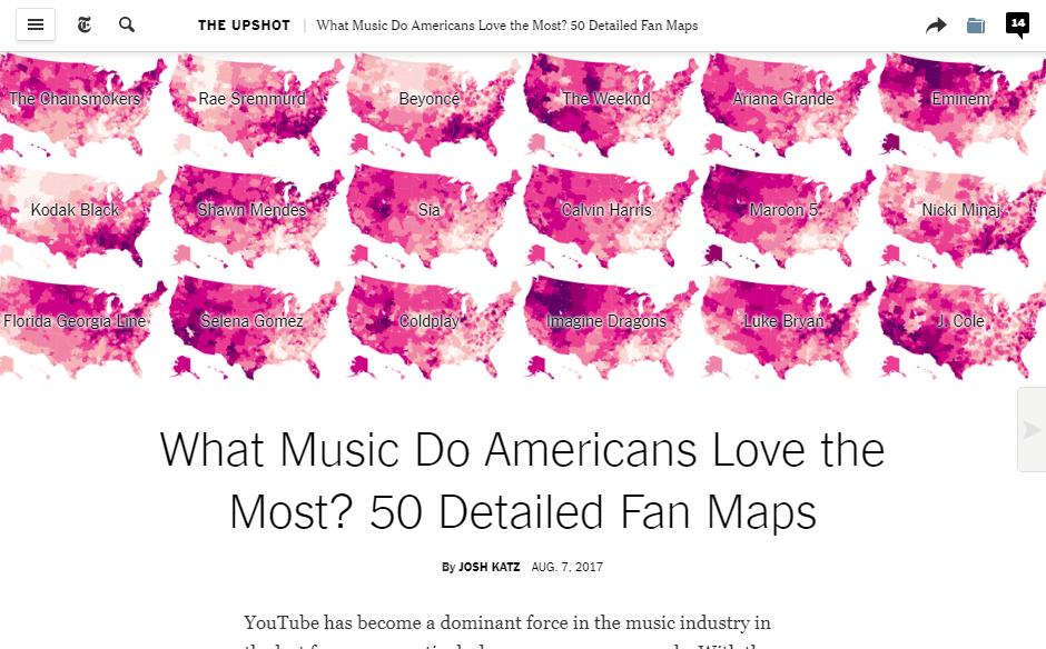 Curated Content Emails – There are dozens of email lists you can subscribe to for content inspiration. Two of my favorites are Data Is Plural (archives) and Numlock news (archives), both of which curate popular stories that focus on data analysis. These email blasts are a great way to see how a wide variety of publishers are covering data stories.