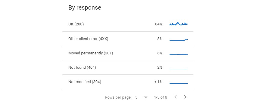 The Crawls Stats report is a more thorough record of the specific responses Googlebot encountered when visiting the site. This is better for spotting sudden increases in error statuses before they go on to impact the Index Coverage reports, as well as spotting temporary inconsistencies that would not be reflected in the Index Coverage report.