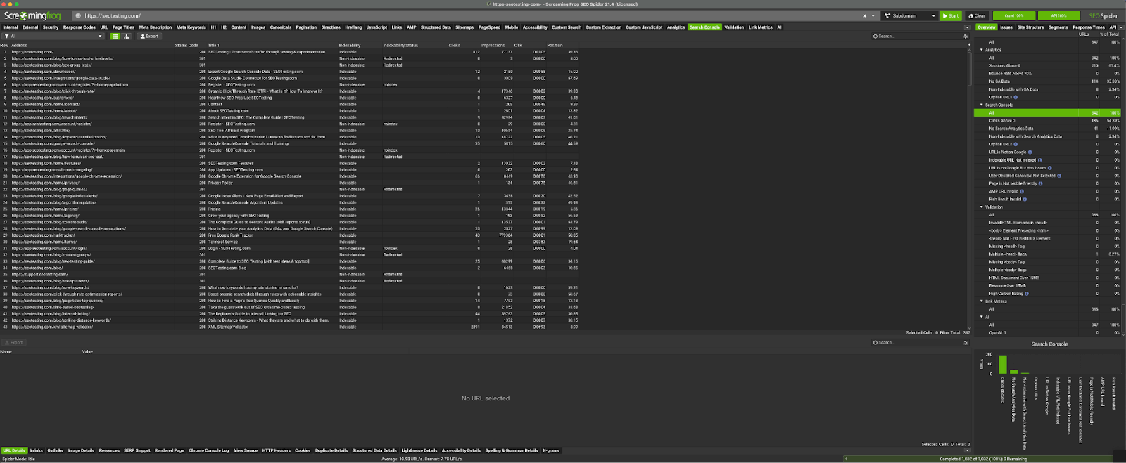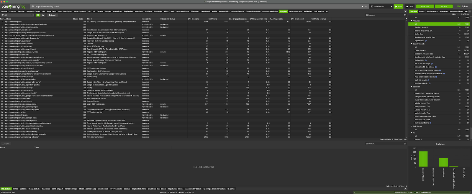 Rather than making changes blindly, use actual performance data to guide your efforts. This is where the GSC & GA4 integrations within the Screaming Frog SEO Spider really shine.