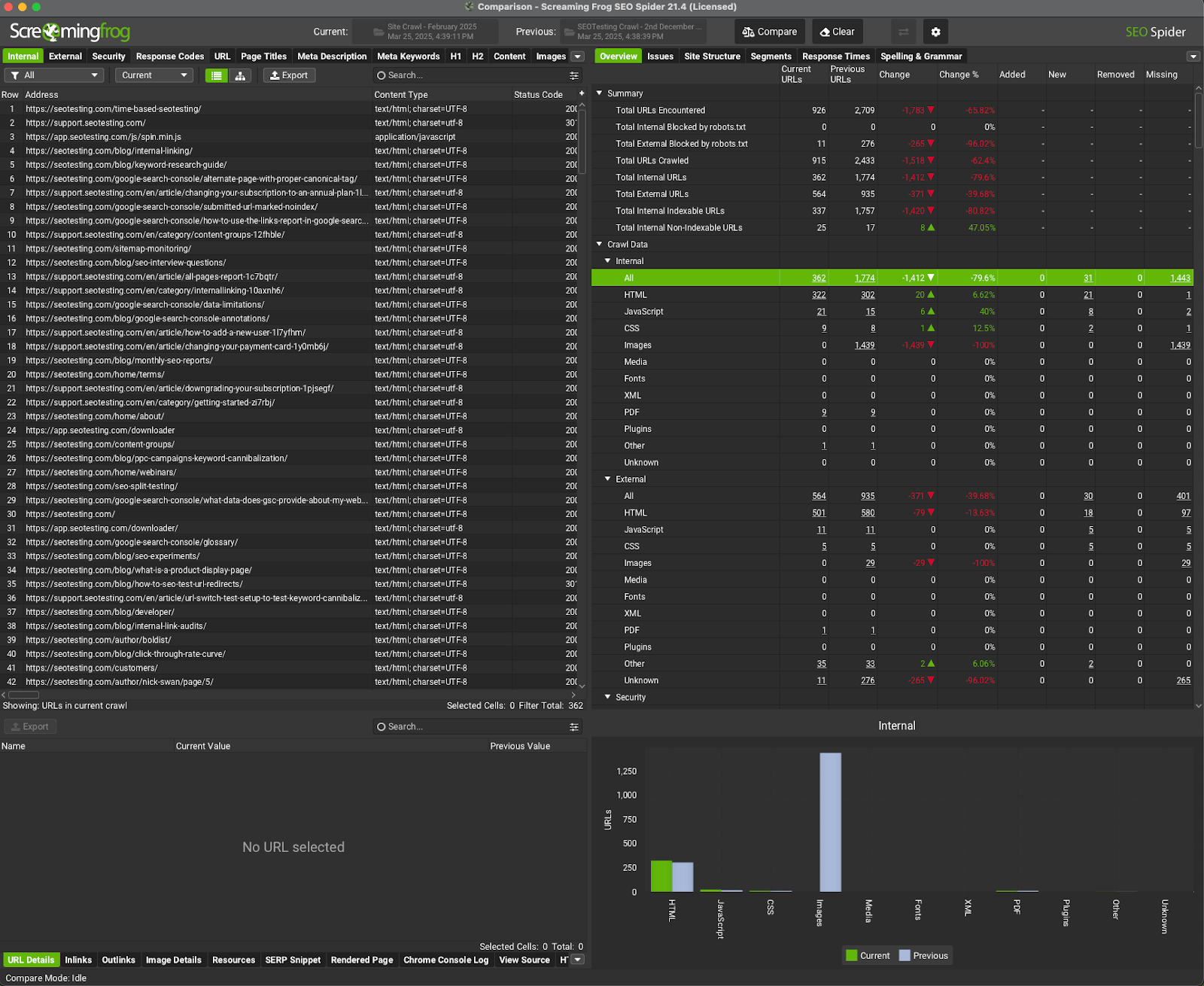 You can use this information to create a list of internal link changes that you want to test. Then, following the steps I outlined earlier, you can run some crawls and use the Crawl Comparison feature to see whether the internal link changes increased search traffic and user experience metrics or were a negative test that you need to learn from.