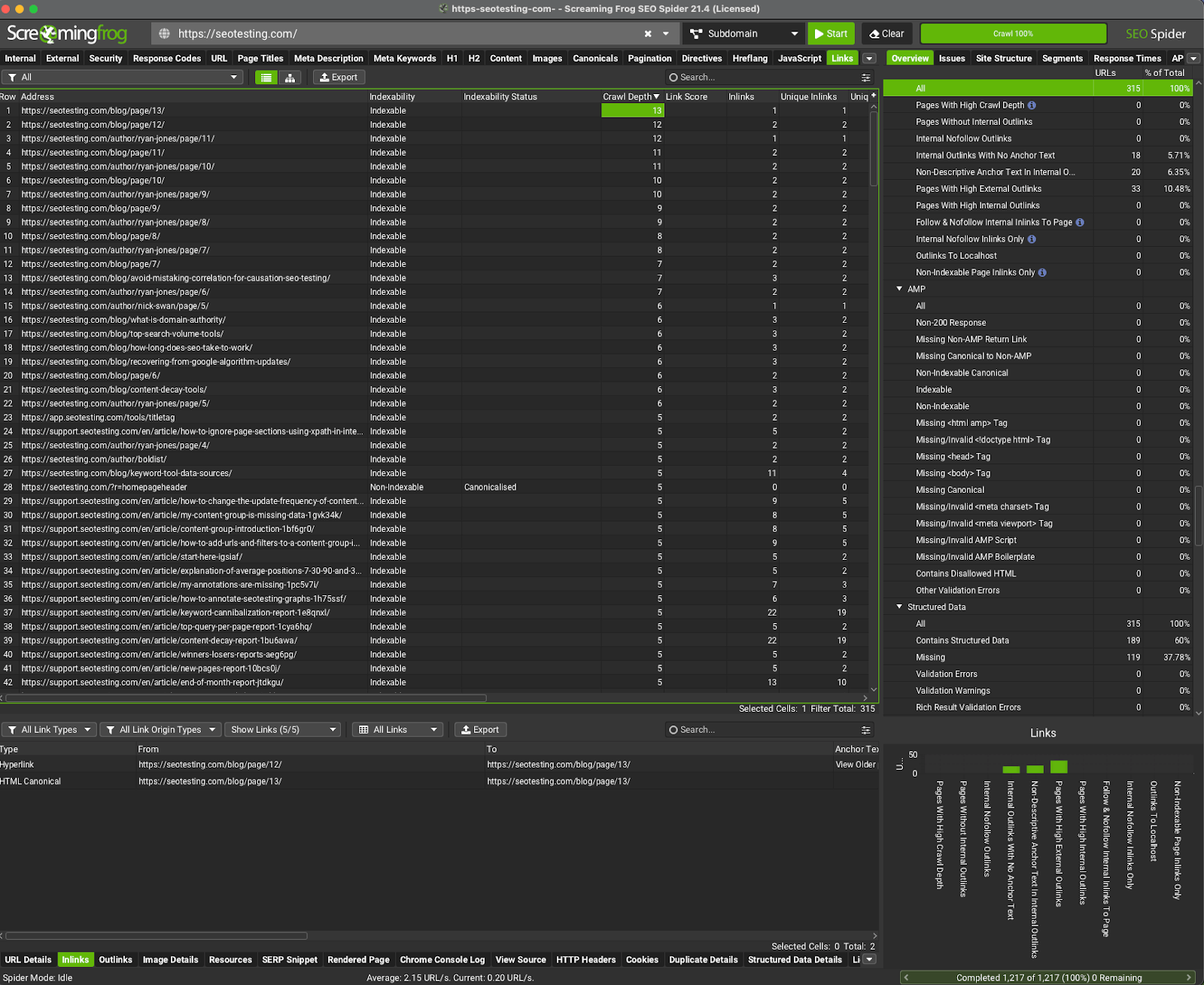 First, I want to discuss how you can quickly audit your site’s internal links using some of the features the Screaming Frog SEO Spider offers.