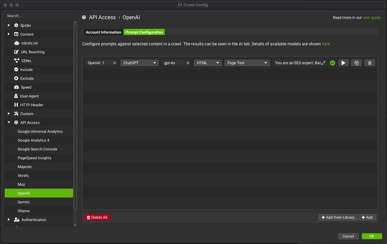 1. Within the OpenAI settings, you will see there is a tab labelled ‘Prompt Configuration’