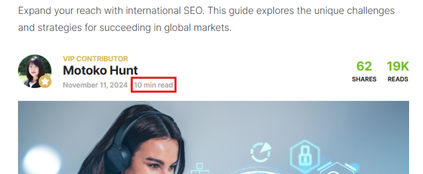 I’ll use the “Getting Started In International SEO: A Quick Reference Guide” article as my guinea pig test page, as seen below: