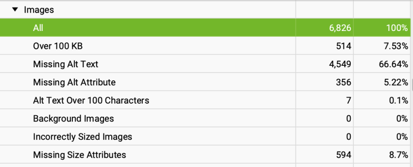 Another element to consider is the presence of missing alt text for images. Alt text provides a textual description of an image, aiding accessibility and assisting search engines in understanding the image’s context. Screaming Frog helps you identify images without alt text, allowing you to add relevant and descriptive alt text to enhance accessibility and SEO.