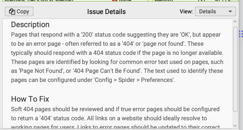 If you are unsure about the meaning of the issue and how to fix it, the SEO Spider also includes in-app descriptions and details.