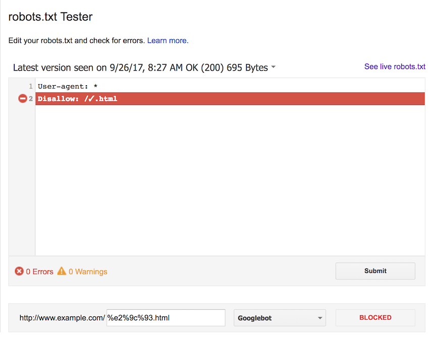 We’ve had a few customers notice that our robots.txt tester tool, in version 8.1 of the SEO Spider, gives different results than the robots.txt tester in Google Search Console .