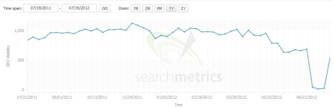 This is how the plummet in visibility looked in Search Metrics to help you visualise what happened –