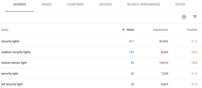 Here you should have a list of queries for which a key page on your site ranks on average just outside of the crucial top ten ranking positions. You can review the page to analyse if it can be improved to better target these keywords, helping to improve their average ranking position, and drive more traffic.